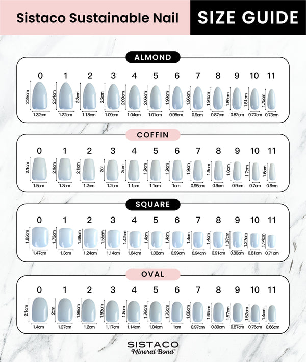 There is a range of sizes in the pack to cater to all nail types and the nails can also be shaped to your size using the file. For further information, refer to our size guide.